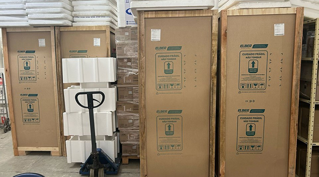 Chegaram ao Espírito Santo 20 novas câmaras de refrigeração para o armazenamento e conservação de vacinas adquiridas pela Secretaria da Saúde (Sesa). Desse total, 18 câmaras serão doadas a municípios capixabas para ampliar e modernizar a Rede de Frio local. Os equipamentos têm capacidade de armazenamento de 500 litros e possuem temperatura regulável mínima de 2°C e máxima de 8°C.